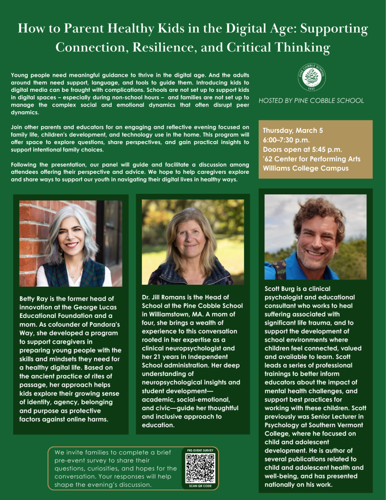 Welcome to Pine Cobble School’s Parent page. We’re so glad that you and your child are a part of the Pine Cobble School community. It’s a responsibility we take seriously, and we strive every day to earn the trust you’ve given us.
